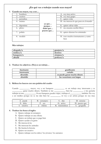 Spanish Future Plans Cuando Sea Mayor Future Tense Jobs Trabajos Teaching Resources
